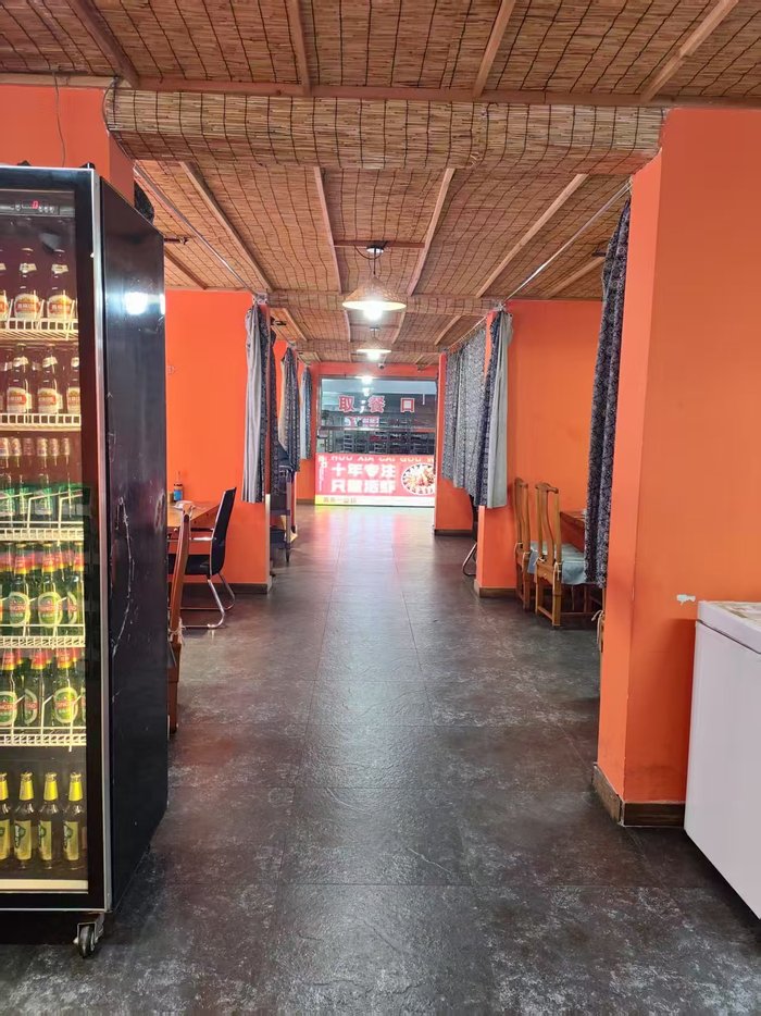 面积室内纯一层500多平,带大院500多平,共计1000多平,室内环境刚装修不到一年,由于合作产生矛盾,无法再继续经营,现在忍痛转让,营业中,有固定的客源,接手不用装修就能营业,有三相电,厨房设备齐全,桌椅板凳有30多套,价格面议,非诚勿扰